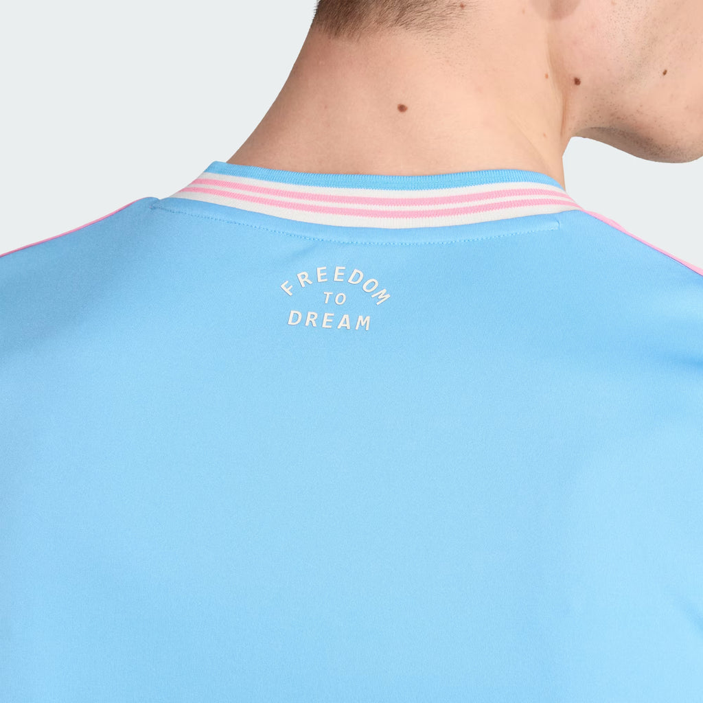 El vibrante espíritu de Miami y la belleza de su costa mundialmente famosa se unen en esta camiseta especial del Inter Miami CF. Con sutiles rayas verticales y toques de rosa, el azul océano de esta tercera equipación aporta una elegancia serena. El escudo del club y el trébol de adidas, cosidos sobre el suave tejido, le dan un toque distintivo. La tecnología AEROREADY, que controla la humedad, garantiza una sensación excepcional.