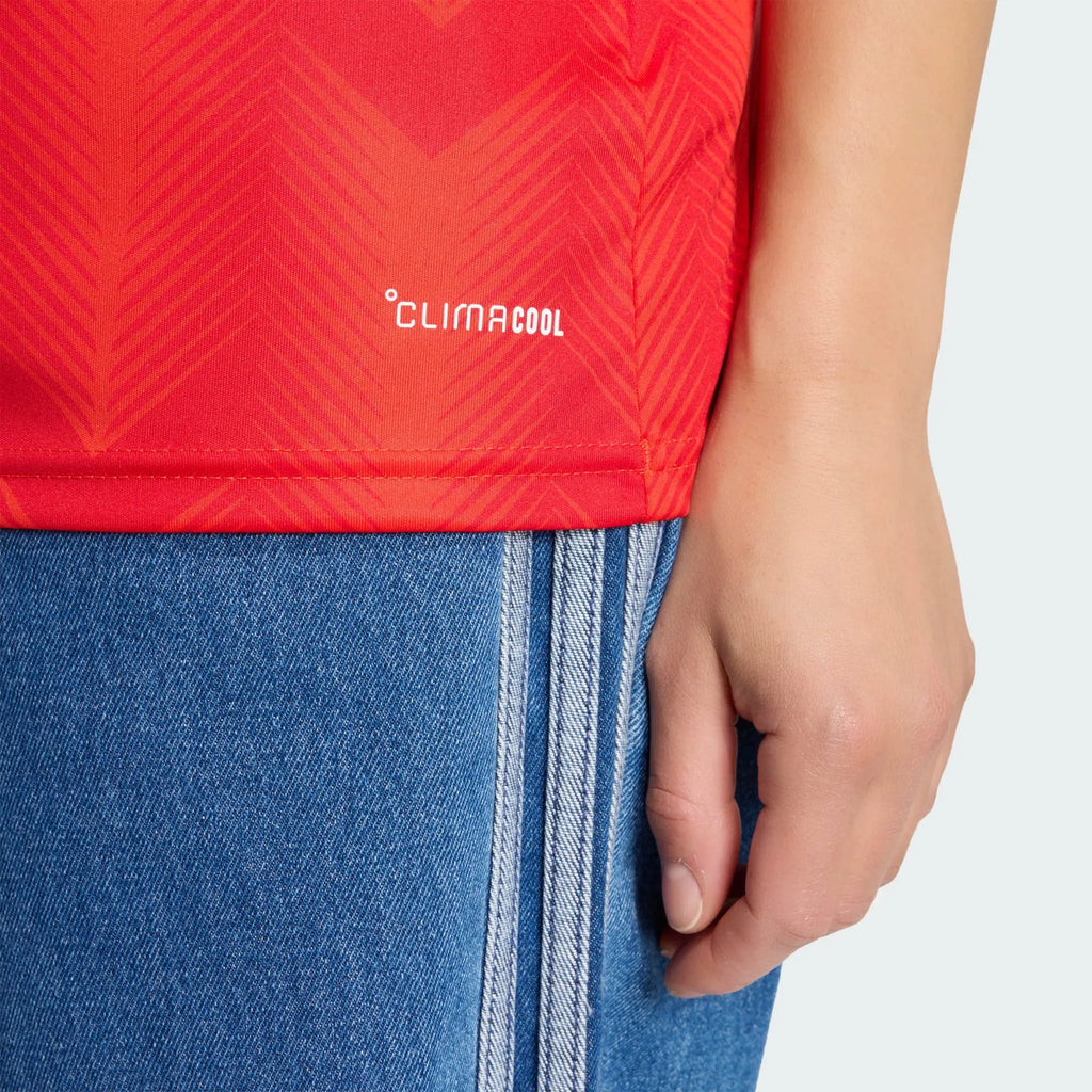Inspirada en el majestuoso cóndor, símbolo de unidad y fuerza, la camiseta local de la Selección Chilena 26 captura la esencia de la libertad y la majestuosidad, que la convierten en una prenda imprescindible para los hinchas de la Selección Chilena que viven y respiran fútbol. Tela fresca. Piel seca. Mente lista. La tecnología Climacool evacua y dispersa el sudor para un rendimiento fresco, seco y sin distracciones. El tejido entrelazado proporciona durabilidad y suavidad al contacto con la piel. El ajuste clásico y el cuello en V ofrecen comodidad y estilo, mientras que el vibrante diseño con el emblemático logo de adidas y el escudo de la federación rinden homenaje al orgullo nacional de la Selección Chilena. Ya sea si estás en el campo de juego como animando desde las gradas, esta camiseta encarna el espíritu del juego. Únete a la familia adidas y celebra el fútbol con una camiseta que combina tradición y rendimiento de vanguardia.