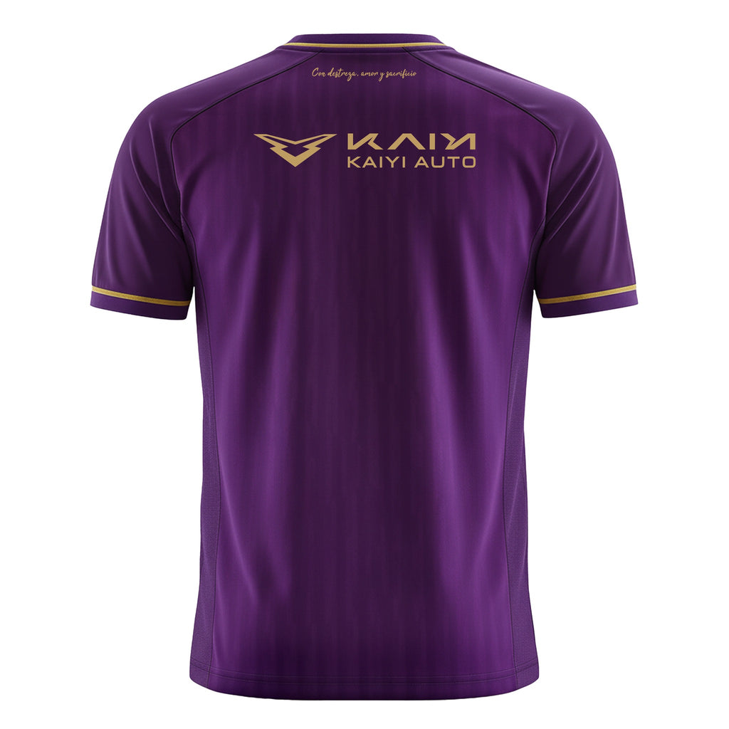Su icónico color lila se combina con elegantes detalles en dorado, evocando el prestigio y la tradición del club. Confeccionada en tejido jacquard tridimensional, esta camiseta ofrece una textura distintiva y un acabado premium, pensados tanto para el rendimiento deportivo como para el uso diario del hincha.