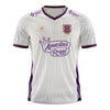 Su versión en blanco de visita, incluye el característico color lila. Confeccionada en tejido jacquard tridimensional, esta camiseta ofrece una textura distintiva y un acabado premium, pensados tanto para el rendimiento deportivo como para el uso diario del hincha.