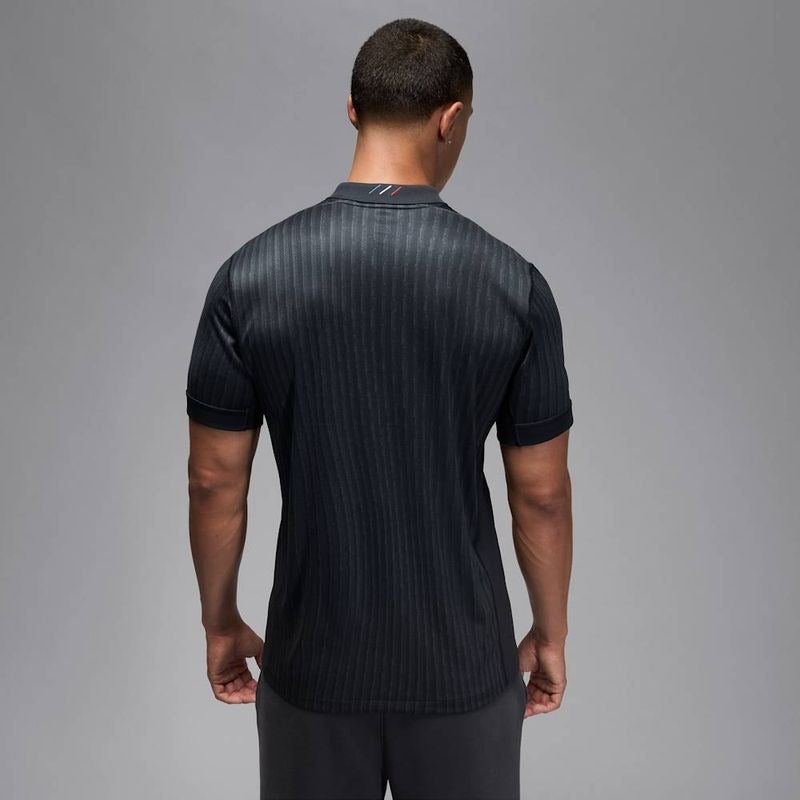 Una interpretación moderna de su uniforme de 1985, la Cuarta Colección 2025/26 del Paris Saint-Germain es un homenaje a la rica historia de la moda parisina. La **polera** lleva una franja roja que recorre el frente, inspirada en las líneas de equilibrio que se encuentran en el maniquí de un sastre, lo que celebra a los diseñadores de fama mundial de la ciudad.