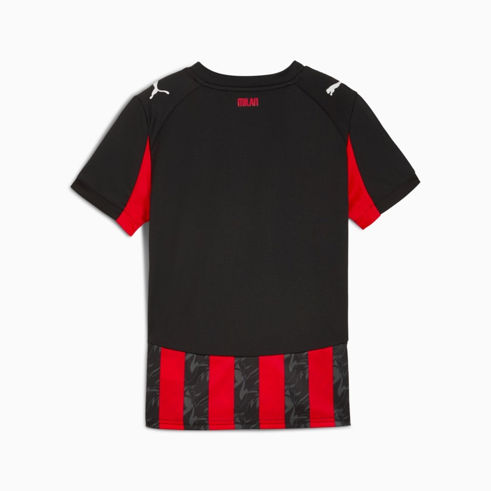 Esta temporada, todos los detalles de la nueva camiseta gritan AC Milan: los icónicos colores, el estampado integral de llamas en las rayas negras y el el audaz escudo del club. Esta camiseta local 25/26 es una interpretación moderna de lo que supieron decir los fundadores del club: “Nuestros colores serán el rojo del fuego y el negro del miedo que nos tendrán nuestros rivales“. Muestra tu pasión por el fútbol europeo.