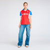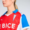 La camiseta de visita representa los tres colores blanco, azul y rojo del escudo que se mezclan nuevamente en una camiseta que conecta con los 90’s y con un diseño que marcó tendencia entonces y que sigue marcándola hasta ahora. Esta nueva camiseta mira al pasado para reafirmar el presente. Es un homenaje a quienes estuvieron antes, a los que alentaron sin condiciones y a los que enseñaron que la camiseta se respeta. ¡Vamos cruzados de corazón!