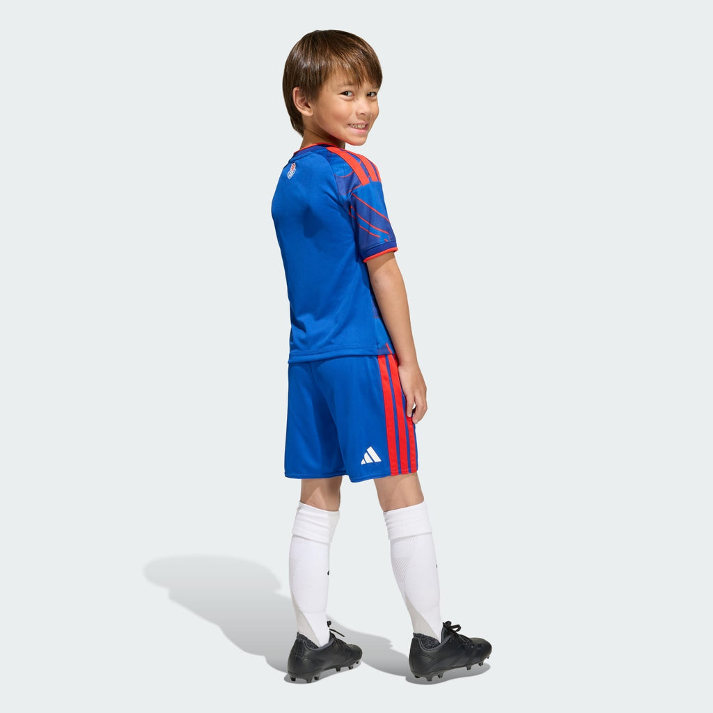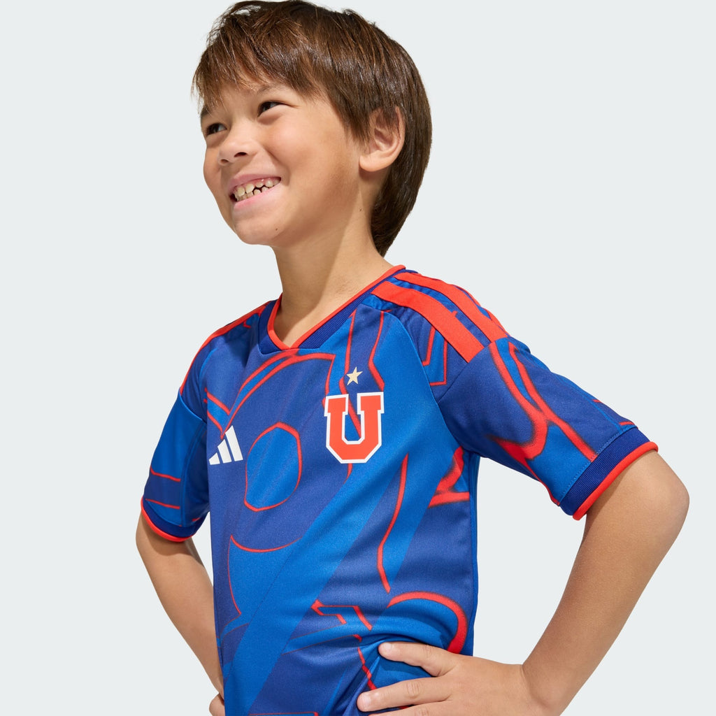 Deja que los niños muestren su orgullo por el club con el conjunto uniforme local Universidad de Chile 26 para Niños. Inspirado en el clásico uniforme de los años 90, este conjunto de camiseta y shorts es una interpretación futurística de esa década creativa, con un gráfico personalizado en el frente. Ya sea para jugar al fútbol o simplemente para mostrar su espíritu de equipo, este conjunto está diseñado para ofrecer rendimiento y estilo. Confeccionado con la tecnología Climacool de adidas, este conjunto ayuda a proporcionar una experiencia fresca, seca y sin distracciones, diseñada para el juego activo. El tejido entrelazado ofrece durabilidad y comodidad, lo que lo convierte en una excelente opción para las actividades escolares, la práctica deportiva o el juego con amigos. Mantén a tus pequeños frescos, cómodos y orgullosos de llevar los colores de su equipo cada vez que jueguen. Este conjunto les ayudará a mantener la confianza dentro y fuera de la cancha.
