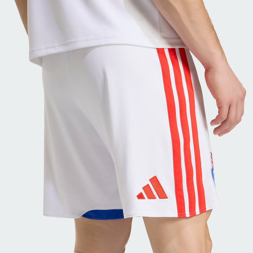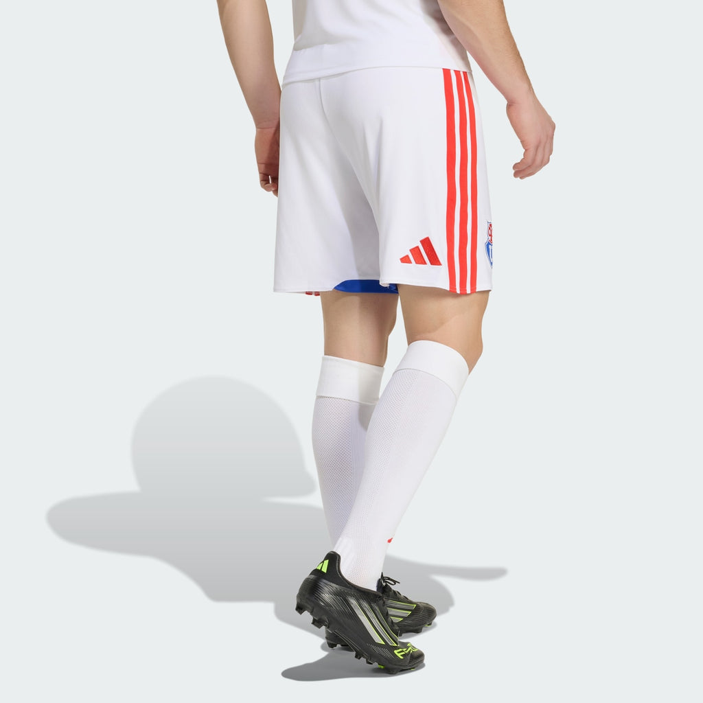 Salta a la cancha con orgullo con los Shorts Visitante Universidad de Chile 26. Diseñados para complementar la emblemática camiseta, estos shorts encarnan el espíritu del juego y la pasión de los hinchas. Con el escudo del club tejido, son una prueba de tu soporte incondicional al equipo. Diseñados para rendir al máximo, estos shorts cuentan con la tecnología Climacool de adidas, que te ayuda a mantenerte fresco y seco incluso durante los partidos más intensos. El tejido que elimina el sudor trabaja sin descanso para controlar la humedad, ayudándote a mantenerte cómodo y concentrado en el juego. La banda totalmente elástica en la cintura con cordón de ajuste ofrece un ajuste seguro, lo que te permite moverte con libertad y confianza. Confeccionados con tejido entrelazado, estos shorts prometen durabilidad y comodidad, lo que los convierte en un básico en tu armario de fútbol. Tanto si juegas en la cancha como si animas desde las gradas, estos shorts son tu mejor aliado. Disfruta del juego con adidas y deja que tu pasión brille en cada movimiento.