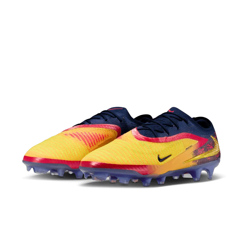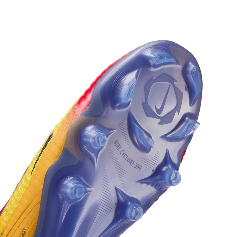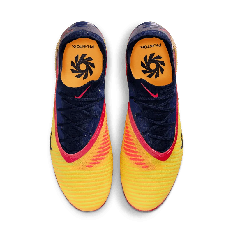 Con su azul hielo y sus tonos rojo y amarillo intensos, estas Phantom 6 Elite evocan la pasión interior de Erling Haaland y sus explosiones goleadoras. Potencian la precisión con el revolucionario Nike Gripknit, una textura adherente que acerca el pie al balón y ayuda a controlar cada oportunidad. Al combinarse con la placa de tracción Cyclone 360 para cortes rápidos, ofrecen una ventaja goleadora injusta.