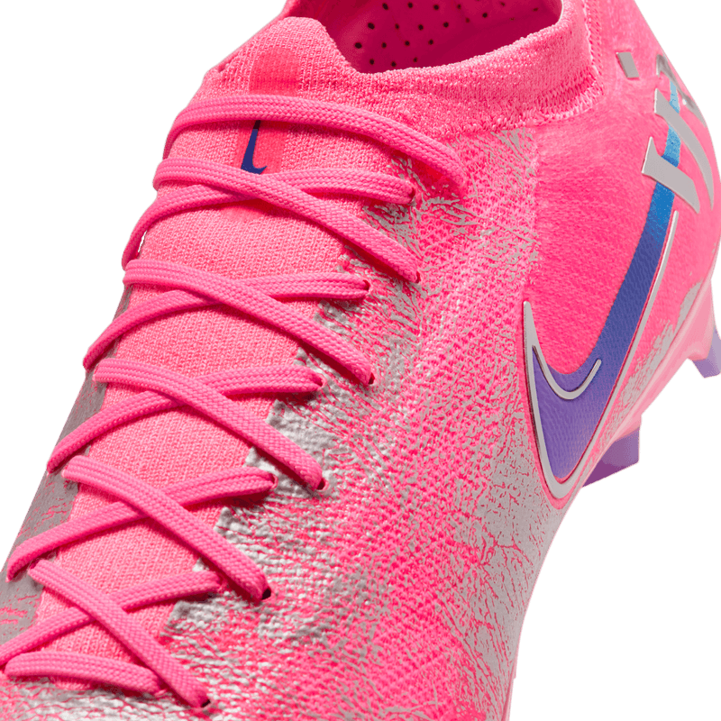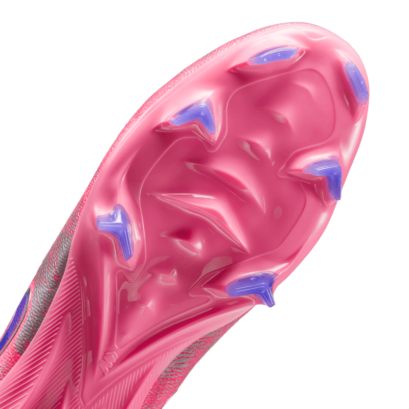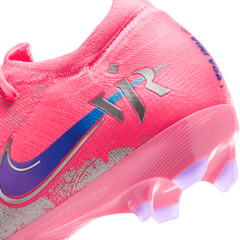 La capa metálica exterior es un homenaje al estilo vibrante de Vini Jr. en el campo y a su pasión de toda la vida por los calzados de colores intensos. La segunda capa simboliza todo el esfuerzo y el trabajo silencioso que realizó detrás de escena para ganarse el derecho de portar un diseño de este nivel.